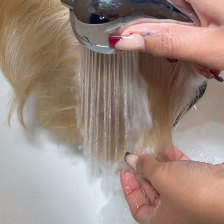 Supernova Shampoo gently cleansed and toned Kendal's blonde for a cleaner, brighter finish.