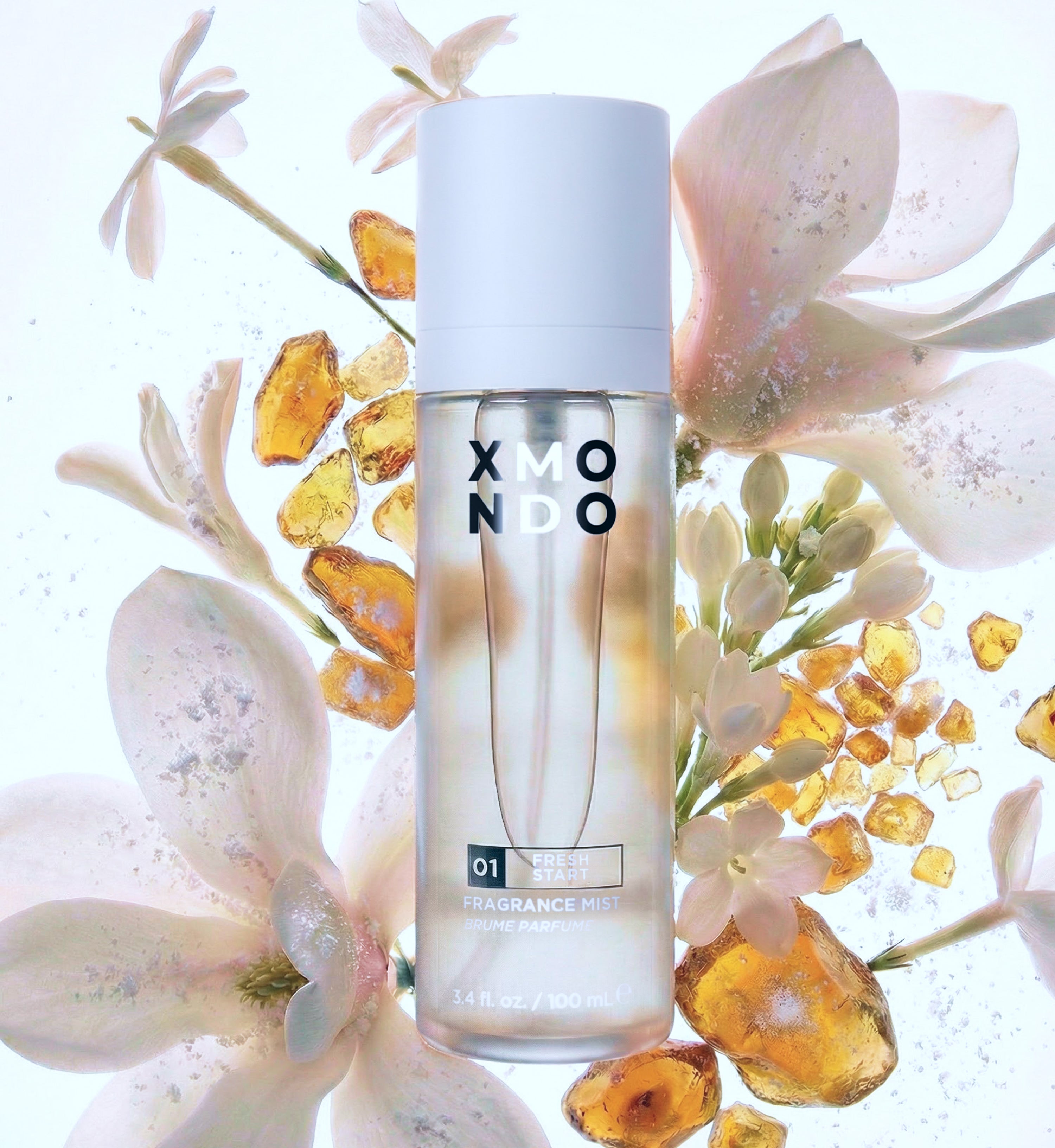 A modern, clean floral with orange blossom, lily of the valley, and warm amber wrapped in soft sheer musk.