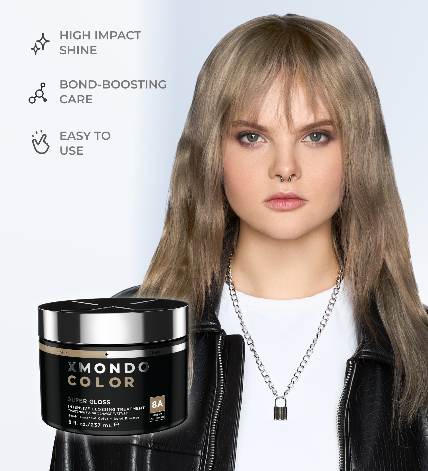 The results of Super Gloss Intensive Glossing Treatment are semi-permanent, meaning the color will gradually fade with each wash. On average, semi-permanent color lasts 2-4 weeks, but longevity depends on several factors.