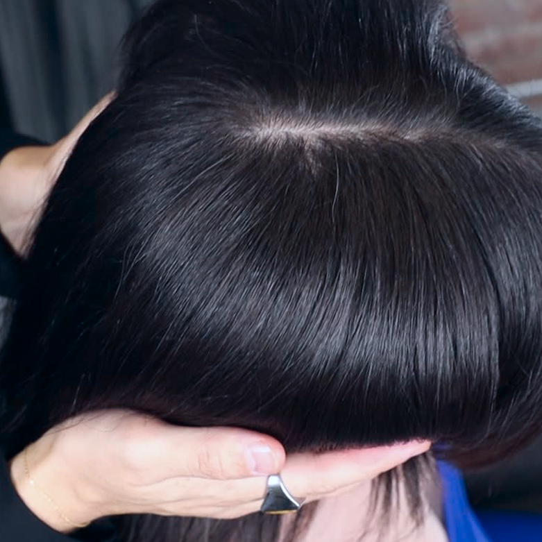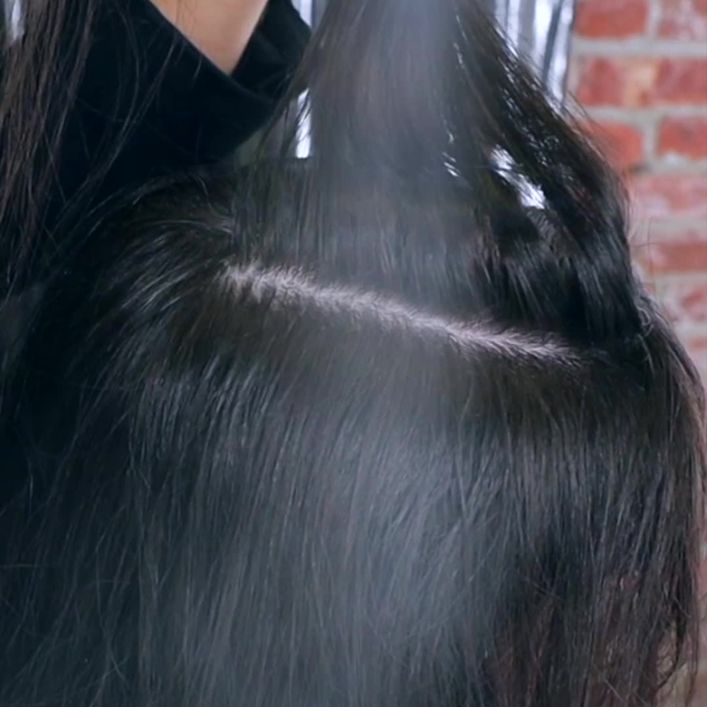Lift hair and spray 8 inches from roots.
