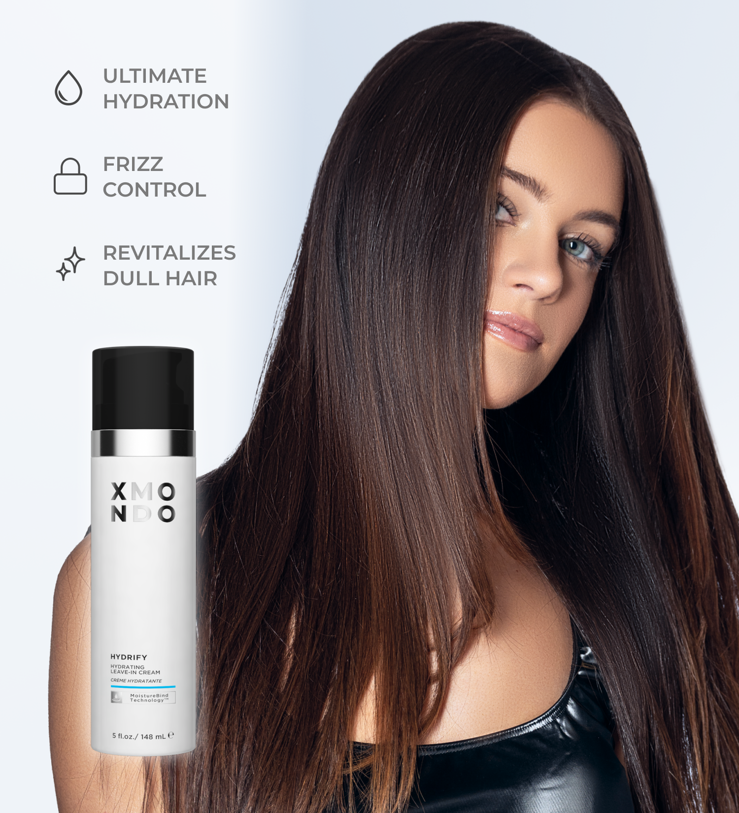 It deeply hydrates, smooths, and preps the hair for styling while controlling frizz and adding softness.