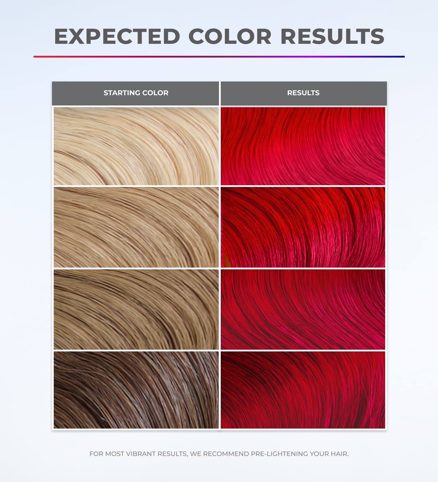 For the most vibrant, true-to-tone results, we recommend applying XMONDO Color to pre-lightened or blonde hair. Some shades may add a subtle tint on darker hair, but results will vary depending on your starting color. Please review our swatch guides to see how each color will show up on your natural hair. For bold, long-lasting color payoff, pre-lightening your hair gives you the best results!
