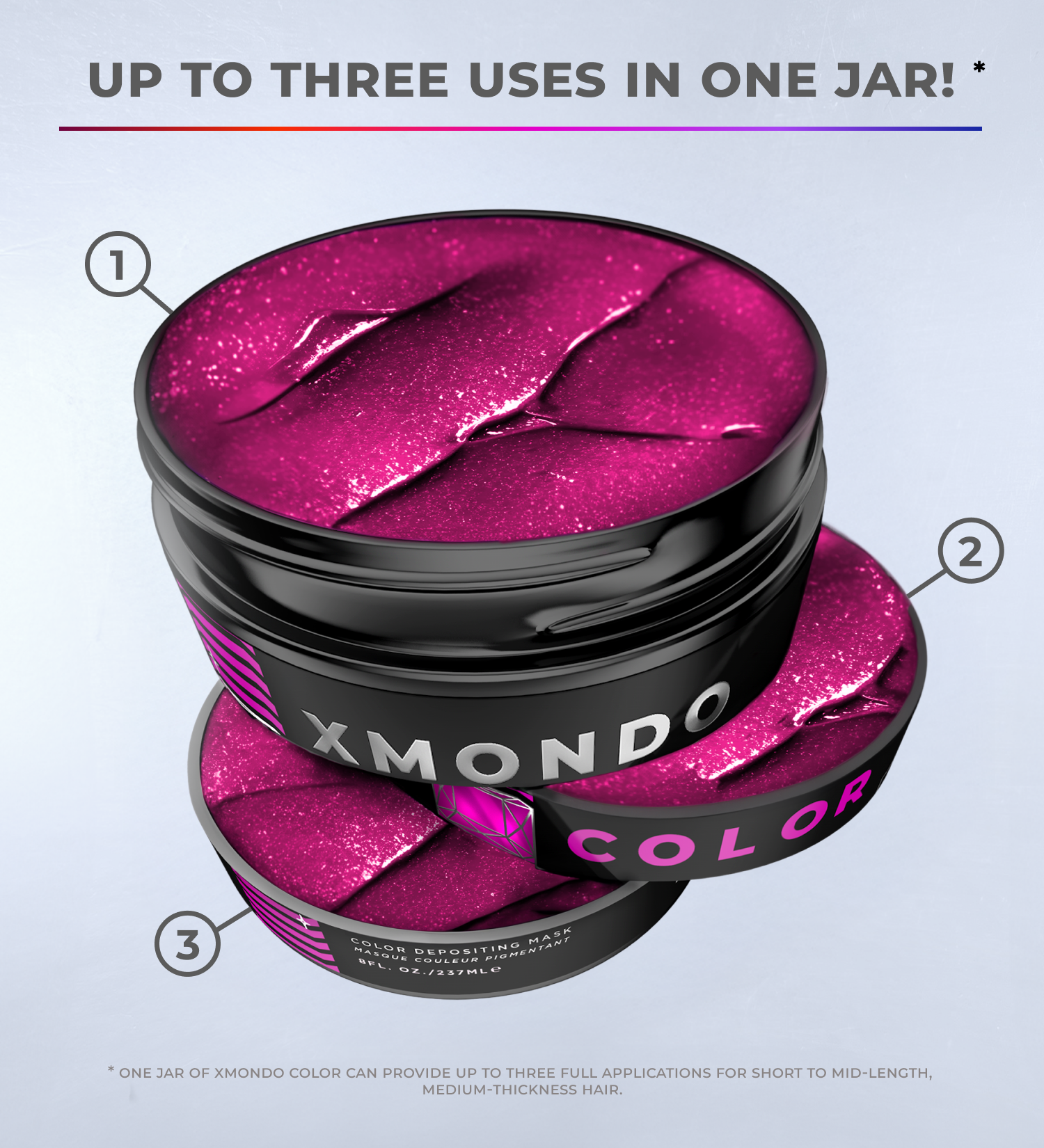 One jar of XMONDO Color typically gives 2-3 applications, depending on your hair’s length and thickness.