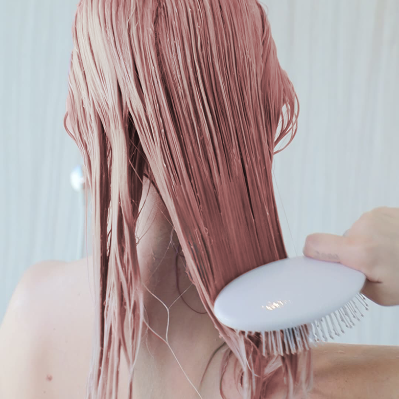 Apply evenly from roots to ends, on clean, damp hair, brushing through to evenly saturate hair.