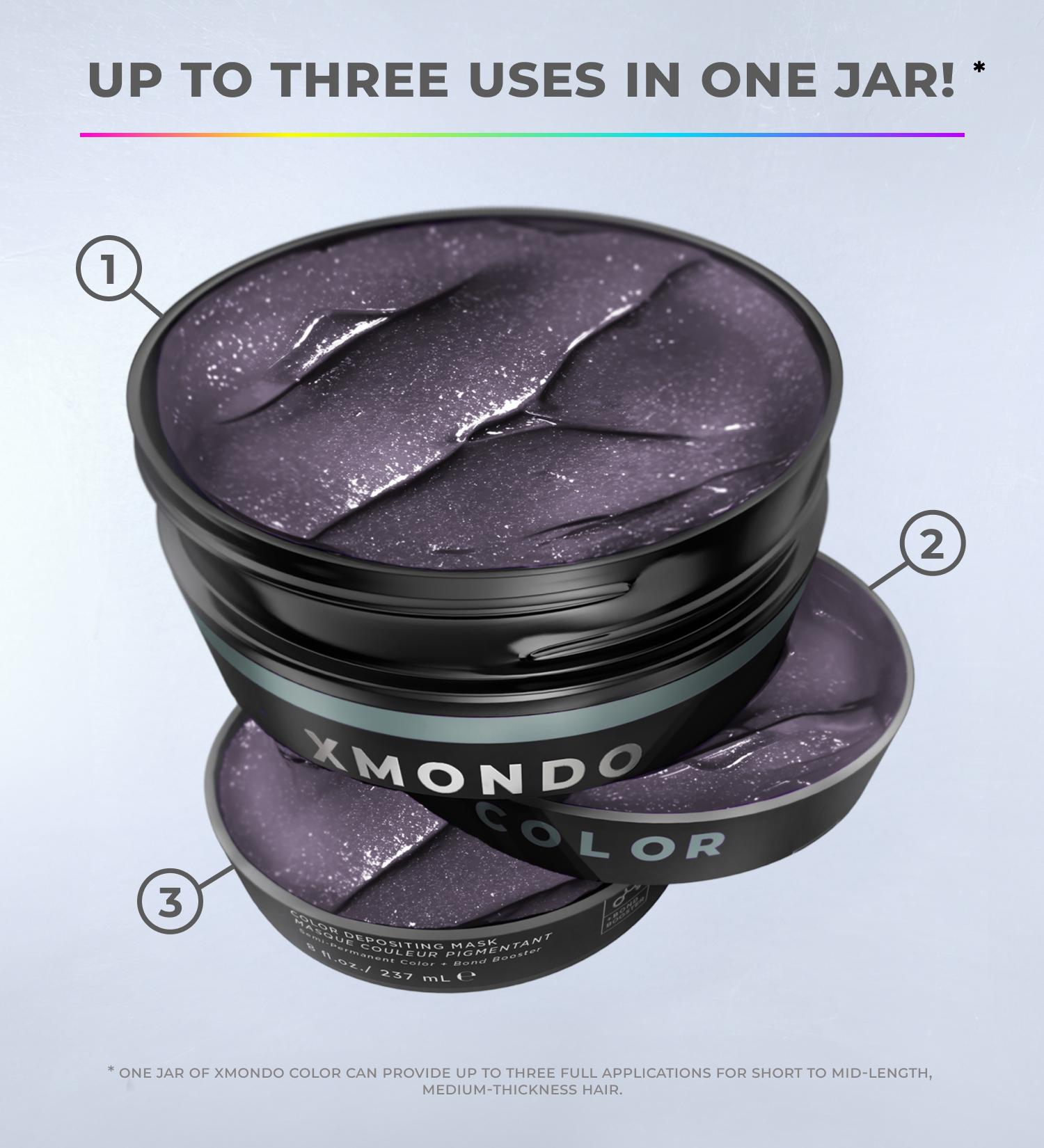 One jar of XMONDO Color typically gives 2-3 applications, depending on your hair’s length and thickness.
