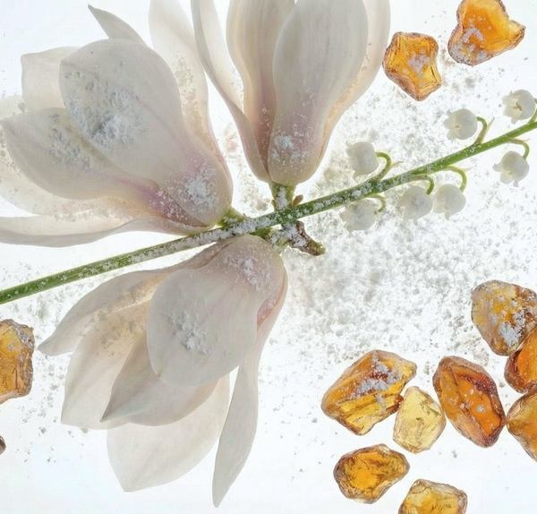 A modern, clean floral with orange blossom, lily of the valley, and warm amber wrapped in soft sheer musk.