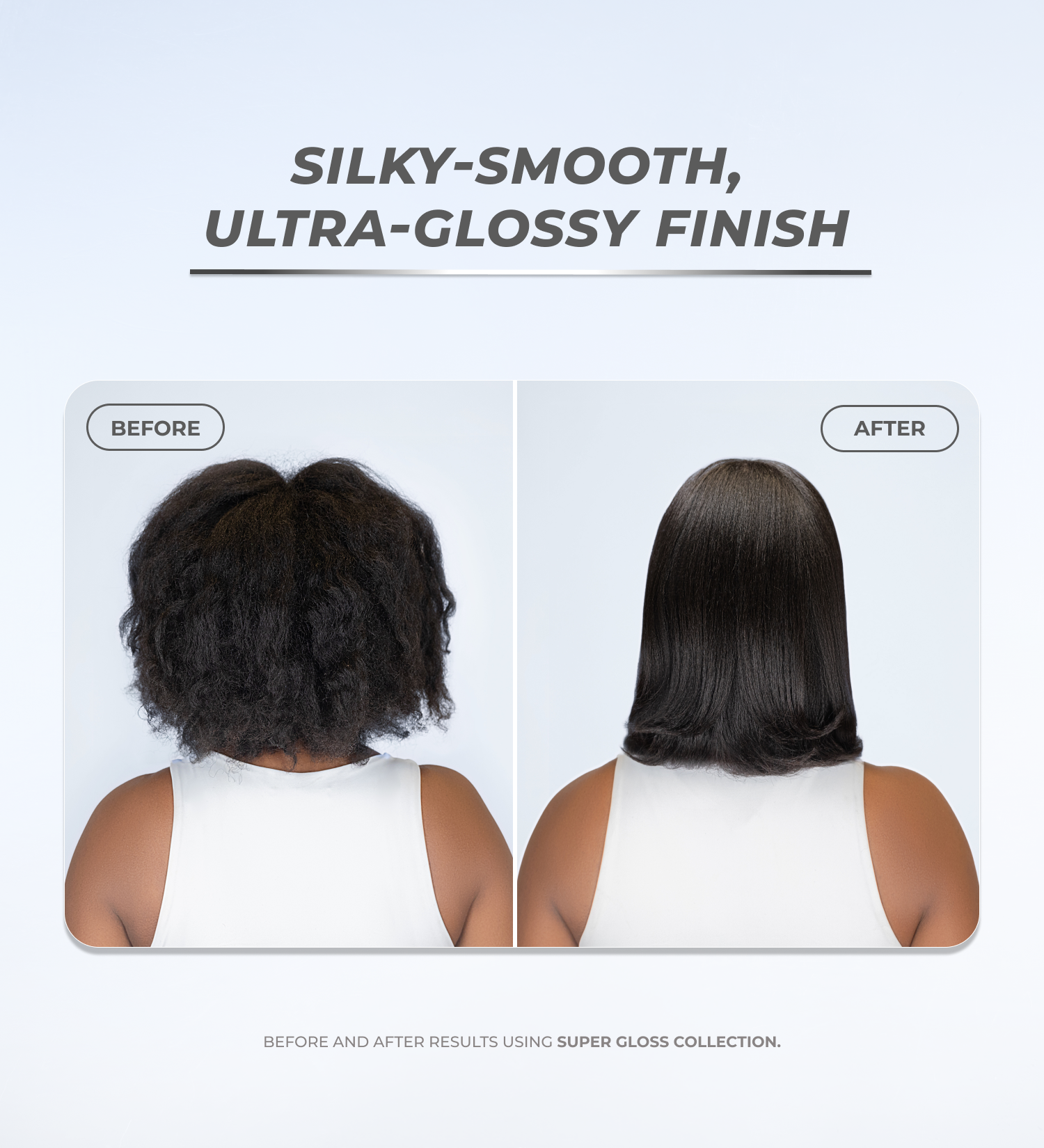 If you would like to use additional products in your routine, we recommend doing so after blow drying and heat styling with Super Gloss Ultra Frizz Defense Spray.