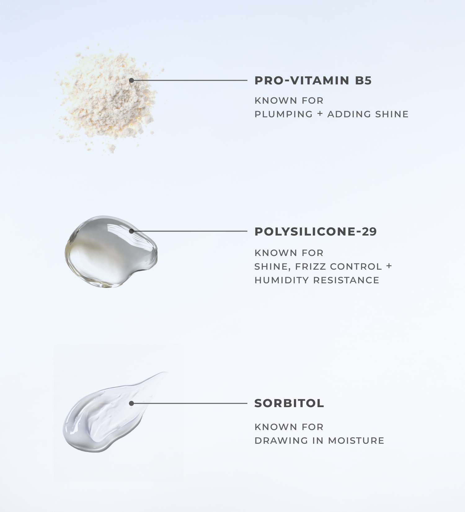 Aqua/Water/Eau, Dipropylene Glycol, Polysilicone-29, Isopentyldiol, Amodimethicone, Trideceth-12, Cetrimonium Chloride, PEG-8 Dimethicone, Sorbitol, Panthenol, Glyoxylic Acid, Polyimide-1, Polyquaternium-10, PG Hydroxyethylcellulose Cocodimonium Chloride, Fragrance (Parfum), Citric Acid, Phenoxyethanol, Ethylhexylglycerin, Alpha-Isomethyl Ionone, Benzyl Salicylate, Citral, Citronellol, Coumarin, Hexyl Cinnamal, Limonene, Linalool.