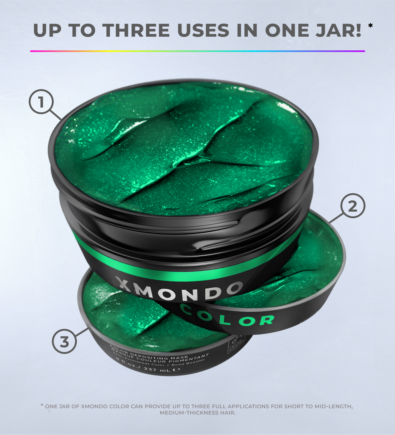 One jar of XMONDO Color typically gives 2-3 applications, depending on your hair’s length and thickness.