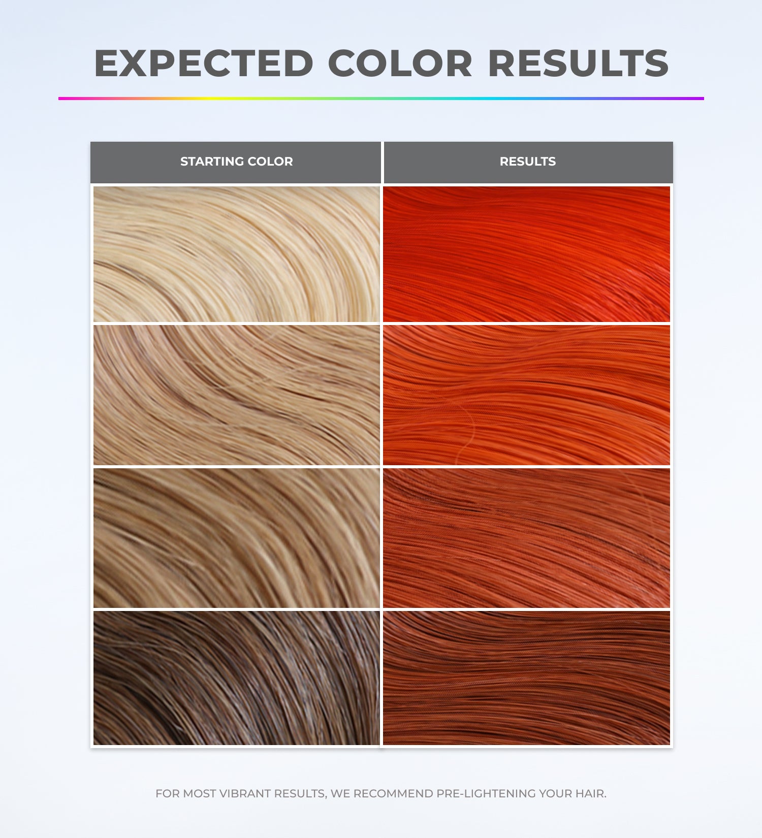 For the most vibrant, true-to-tone results, we recommend applying XMONDO Color to pre-lightened or blonde hair. Some shades may add a subtle tint on darker hair, but results will vary depending on your starting color. Please review our swatch guides to see how each color will show up on your natural hair. For bold, long-lasting color payoff, pre-lightening your hair gives you the best results!