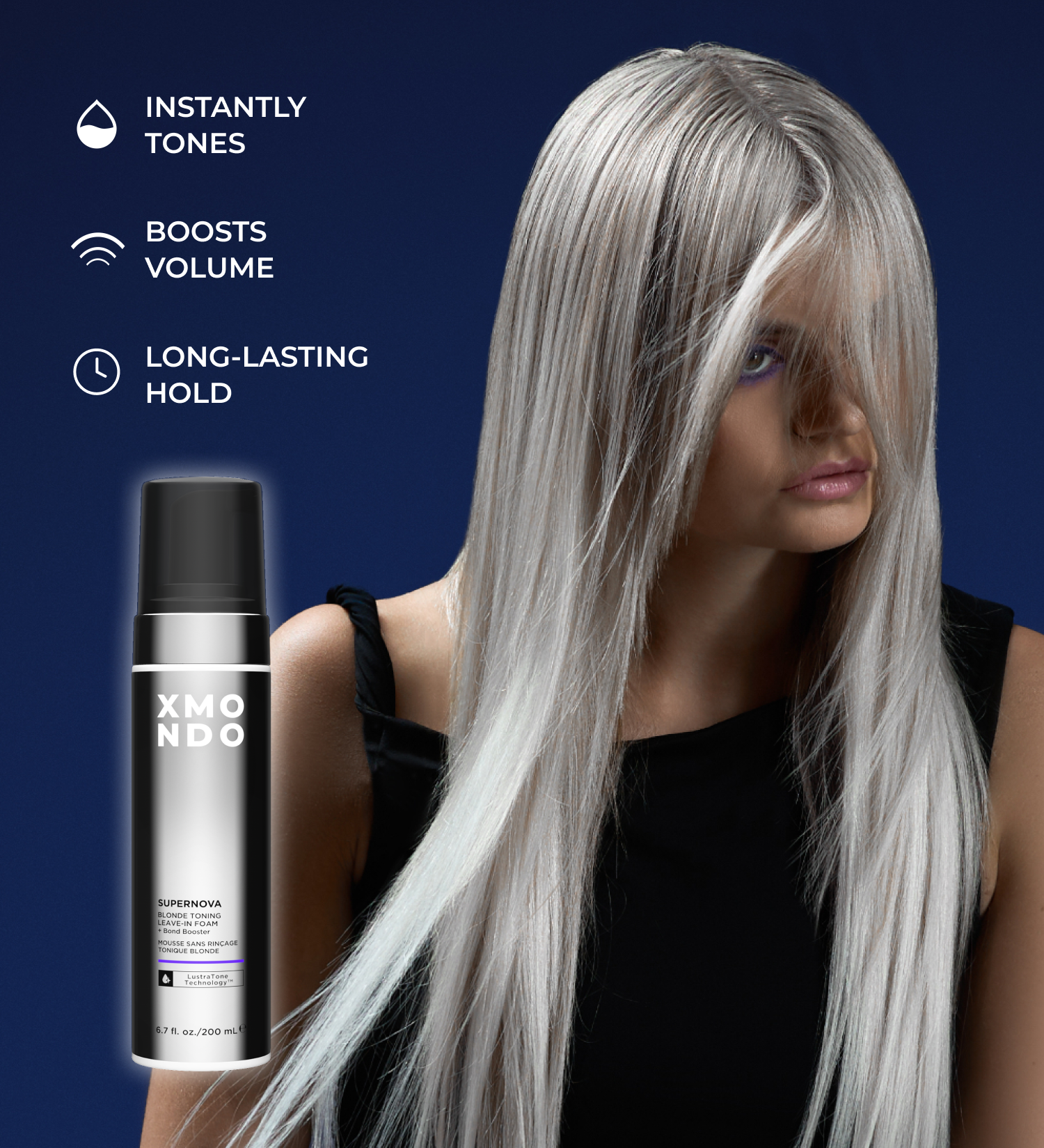 Supernova is ideal for blonde, platinum, silver, and grey hair. It can also tone brassy highlights or balayage.