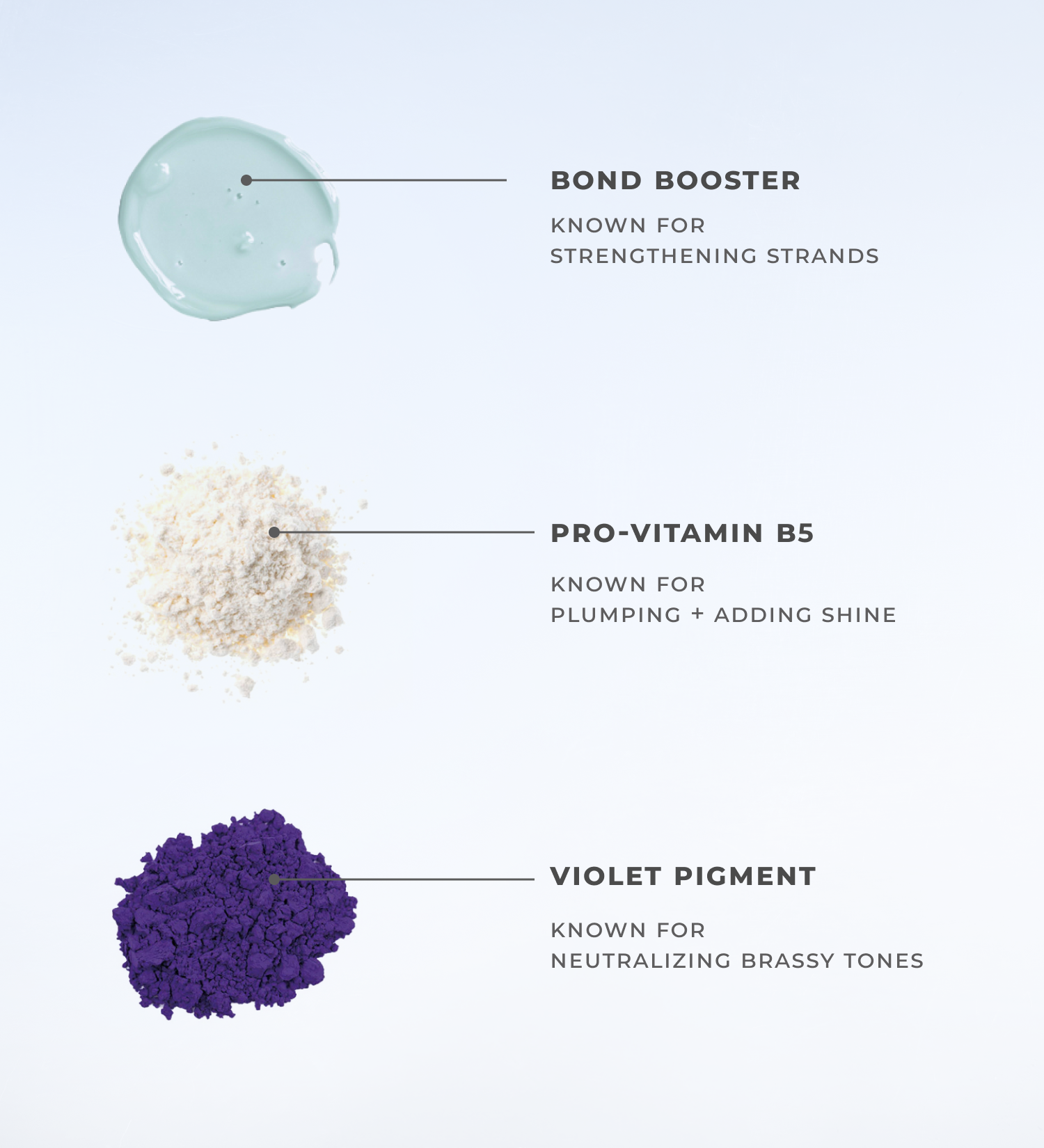 A radiance-boosting complex infused with violet pigments to neutralize brassiness and restore luminosity—leaving hair visibly brighter, cooler, and full of light-reflecting shine.